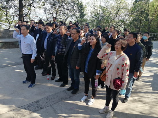 4月19日下午,金沙集团wwW3354CC党委领导班子组织全体教工党员赴西梁山开展党史学习教育,重温入党誓词,瞻仰革命烈士,缅怀革命先烈。