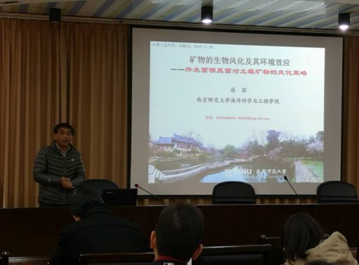 11月28日上午,南京师范大学海洋科学与工程学院连宾教授,应邀来学院做题为“矿物的生物风化及其环境效应”的学术报告。报告会由金沙集团wwW3354CC副院长盛广宏主持,相关学科教师、研究生和本科生聆听了报告。报告以矿物的生物风化及其环境效应为主题,围绕外生菌根真菌对土壤矿物的风化策略,探讨了微生物作用下土壤矿物风化的主要过程与机制以及所伴随的相关元素的环境地球化学行为和效应。最后连宾教授和与会师生就相关热点问题进行了讨论。