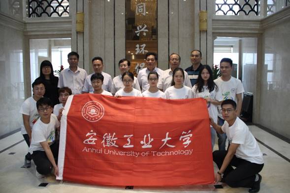 2019年7月18日下午,校长魏先文在金沙集团wwW3354CC和化学与化工学院负责人的陪同下走访慰问了能环、化工学院赴同兴环保科技股份有限公司社会实践队,出席了安徽工业大学——同兴环保科技股份有限公司大学生实践基地揭牌仪式,并召开了公司校友座谈会。同兴环保科技股份有限公司董事长郑光明、总经理朱宁以及公司部分安徽工业大学校友员工出席了揭牌仪式,座谈会和仪式由公司副总经理、董事会秘书曾兴生主持。