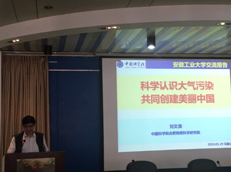 2019年5月30日,中国工程院院士,环境光学监测领域专家,中国科学院安徽光学精密机械研究所所长刘文清应邀来安徽工业大学指导并做学术报告。安徽工业大学魏先文校长,金沙集团wwW3354CC领导班子成员、环境系全体老师、学院全体研究生及相关学院师生参加了报告会。