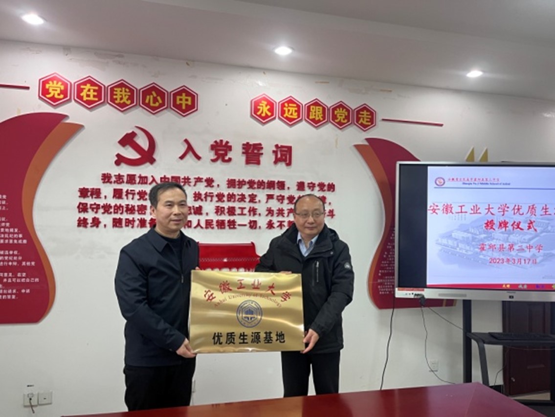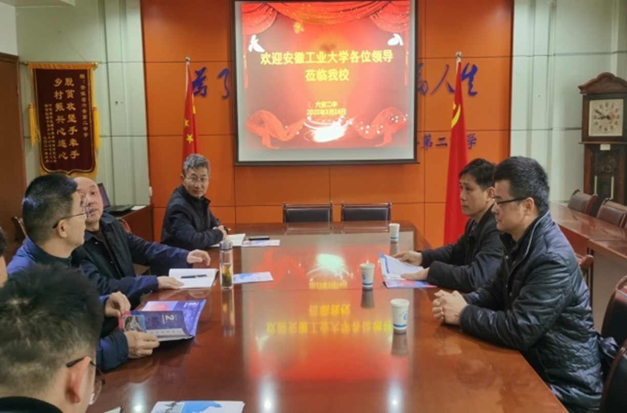 在皖西中学,凤杰首先对皖西中学近年来取得的教育教学成果表示祝贺,对就读在我校的皖西中学学子表示高度认可,并赠送优秀学子喜报。凤杰就安徽工业大学的学科设置、优势专业、学生创新精神培养等方面进行了宣讲,对皖西中学与我校进行招生网络共建进行了探讨。皖西中学校长尤奇志表示希望与我校进行更深层次的交流与合作,愿意在学生中加大对我校的宣传力度,动员更多的考生报考安徽工业大学。