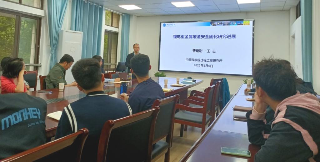 2023年5月6日下午,我院特邀中国科学院过程工程研究所曹建尉研究员为师生做题为“锂电重金属废渣安全固化研究进展”的报告。报告由金沙集团wwW3354CC副院长盛广宏副教授主持,环境系教师及研究生参加。