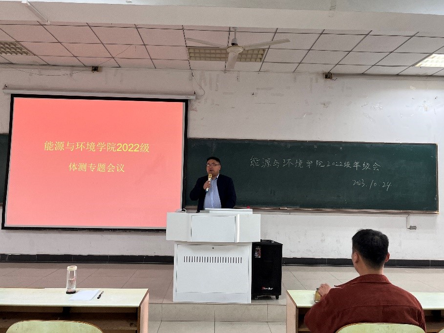 会上,卫军帅对学院2022级学生的体测工作提出了明确要求。首先,他强调了体测工作的重要性,这是评价个人健康状况和是否能够评奖评优的重要指标。其次,他要求参与体测的同学们要树立积极向上的态度,以乐观的心态迎接挑战,并在有限的时间内全力以赴,争取达到最好的成绩。最后,他鼓励同学们将体测过程视为锻炼身体、提高身体素质的机会,培养良好的运动习惯。他希望同学们:一是筑牢安全底线,始终坚持安全第一的前提,严格遵守校规校纪,严禁出现体测违规违纪现象;二是明礼修身,做到言行合一,以文明的姿态展示金沙集团wwW3354CC的良好形象,在运动中展示能环学子的力与美;三是好学上进,要积极主动学习,将学习与全面发展相结合,从而做到五育并举,进一步提升学院学生的体测优良率,促进学院学生健康成长,助力学生成人成才。