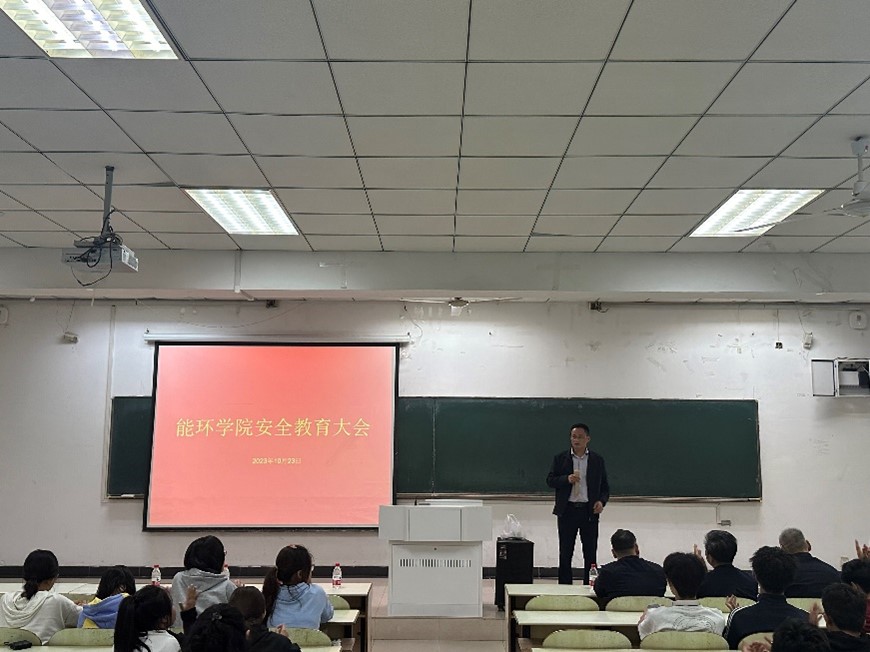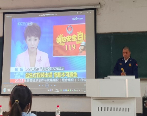 为了提高全体师生的安全防范意识和自我保护能力,金沙集团wwW3354CC于10月23日下午在教三南103召开安全教育大会,由花山区消防大队杜贤明讲师和花山区反诈中心王勇主任进行讲解与指导。校安保部部长包恒庆、湖东路派出所所长王小飞等出席会议,会议由金沙集团wwW3354CC党委副书记、副院长卫军帅主持。全院师生代表近400人参会。