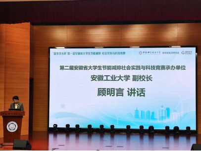 闭幕式上,顾明言作为第二届安徽省大学生节能减排社会实践与科技竞赛承办单位代表发言并进行赛旗交接仪式。她表示,该竞赛紧密围绕“双碳”战略目标等国家重大需求,充分体现“节能减排,主动作为”的精髓以及“点亮生命,绽放生命”的价值追求,是覆盖面广、影响力大的全省大学生实践创新的重要载体。顾明言对“蔻享学术杯”第一届安徽省大学生节能减排社会实践与科技竞赛的圆满成功表示衷心的祝贺,同时感谢安徽省大学生节能减排社会实践与科技竞赛委员会对安徽工业大学的信任和支持,学校定不负期望,全力以赴筹备第二届安徽省大学生节能减排社会实践与科技竞赛。